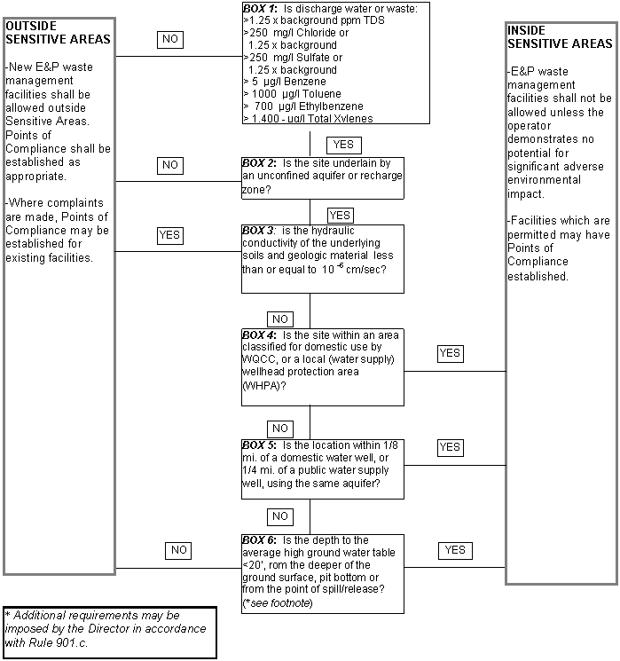 2 CCR 404-1, Figure 901-1 of the Rules and Regulations of the Oil and Gas Conservation Commission sets forth a chart for determination of sensitive areas.