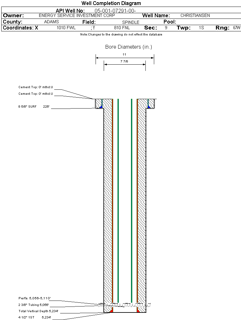 | | Perforation Data: | | Interval Top: | 5056 ft. | # Of Holes: | | | Interval Bottom: | 5110 ft. | Hole Size: | |