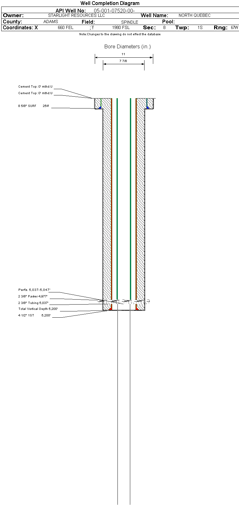 | Perforation Data: | Interval Top: | 5037 ft. | # Of Holes: | 29 | Interval Bottom: | 5047 ft. | Hole Size: | |