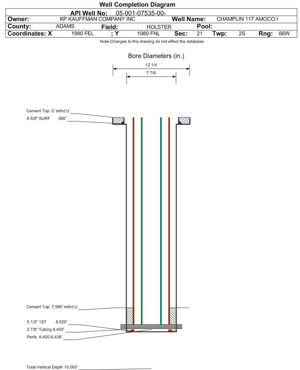 | | Perforation Data: | | Interval Top: | 8400 ft. | # Of Holes: | | | Interval Bottom: | 8438 ft. | Hole Size: | |