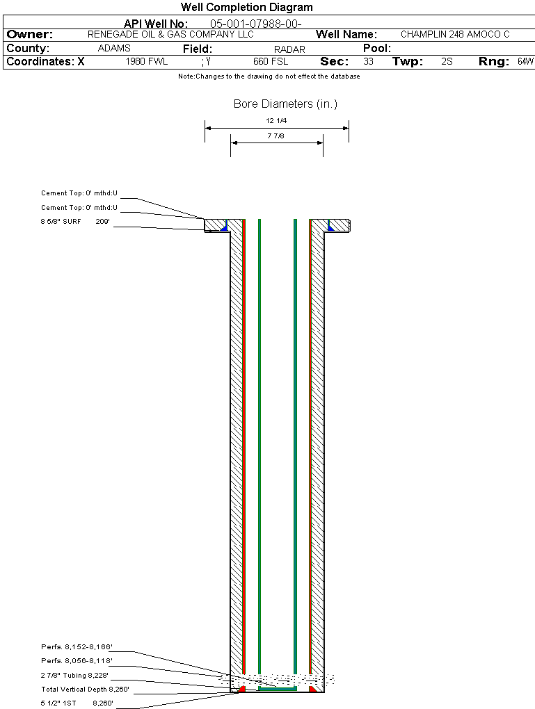 | | Perforation Data: | | Interval Top: | 8152 ft. | # Of Holes: | 40 | | Interval Bottom: | 8166 ft. | Hole Size: | 0.41 in. |