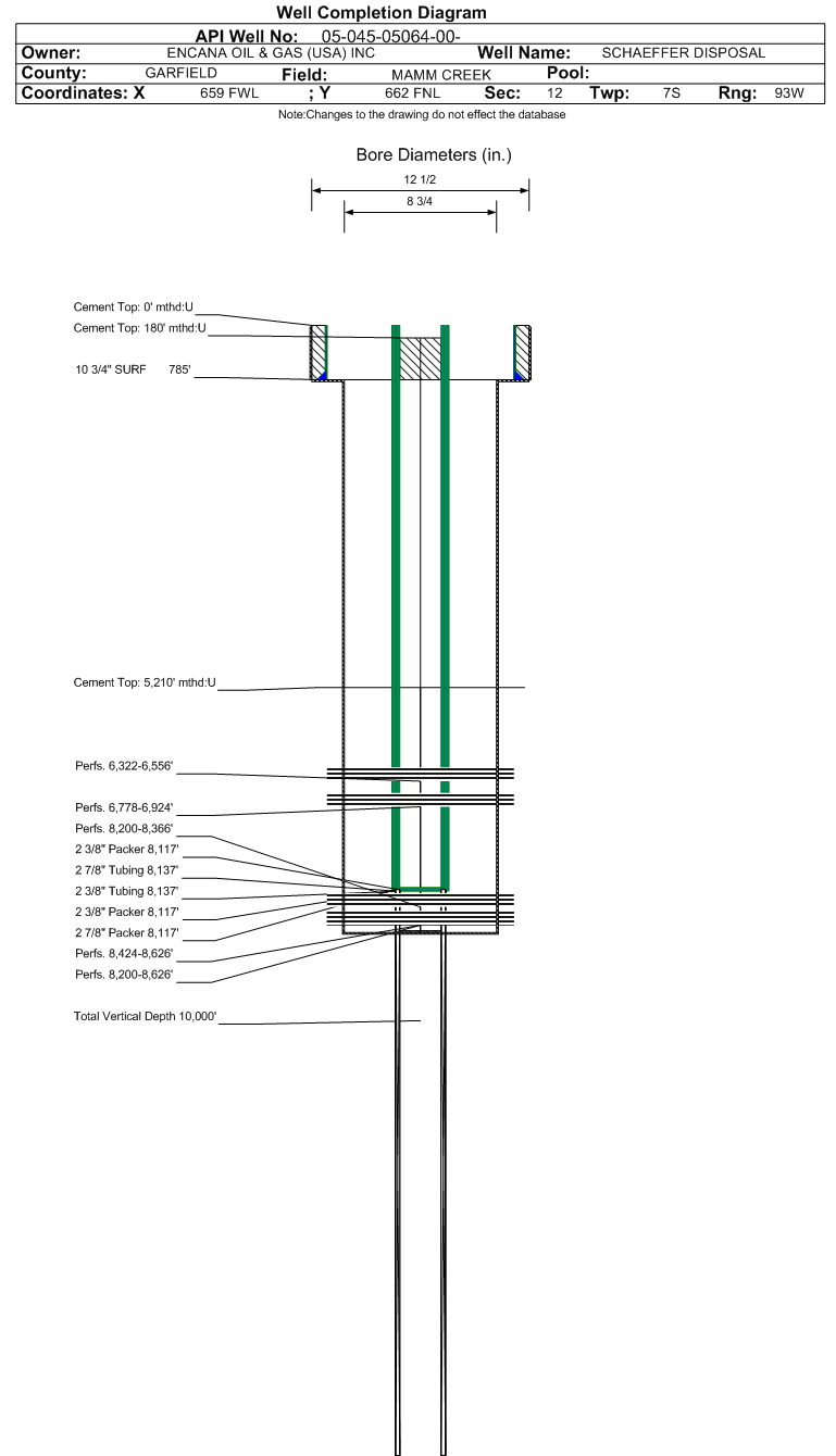 | | Tubing Size: | 2.375 in. | Tubing Setting Depth: | 8137 ft. | | Tubing Packer Depth: | 8137 ft. | Tubing Multiple Packer: | | | Open Hole Top: | | Open Hole Bottom: | | | No Initial Test Data was found for formation COZZ. |