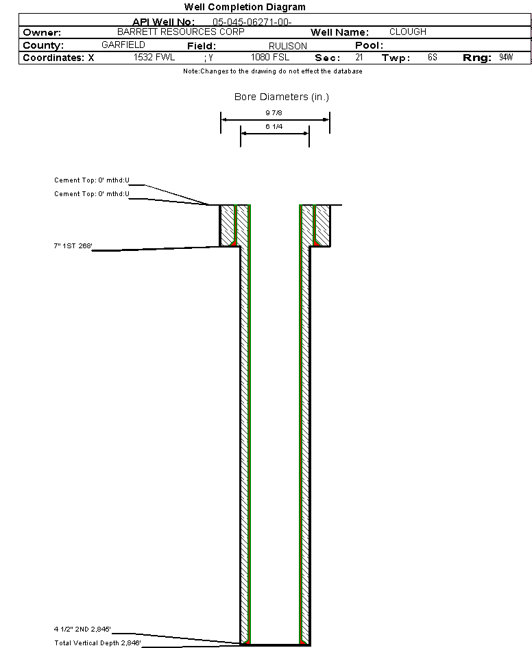 County:GARFIELD #045Location:SESW 21 6S94W 6
