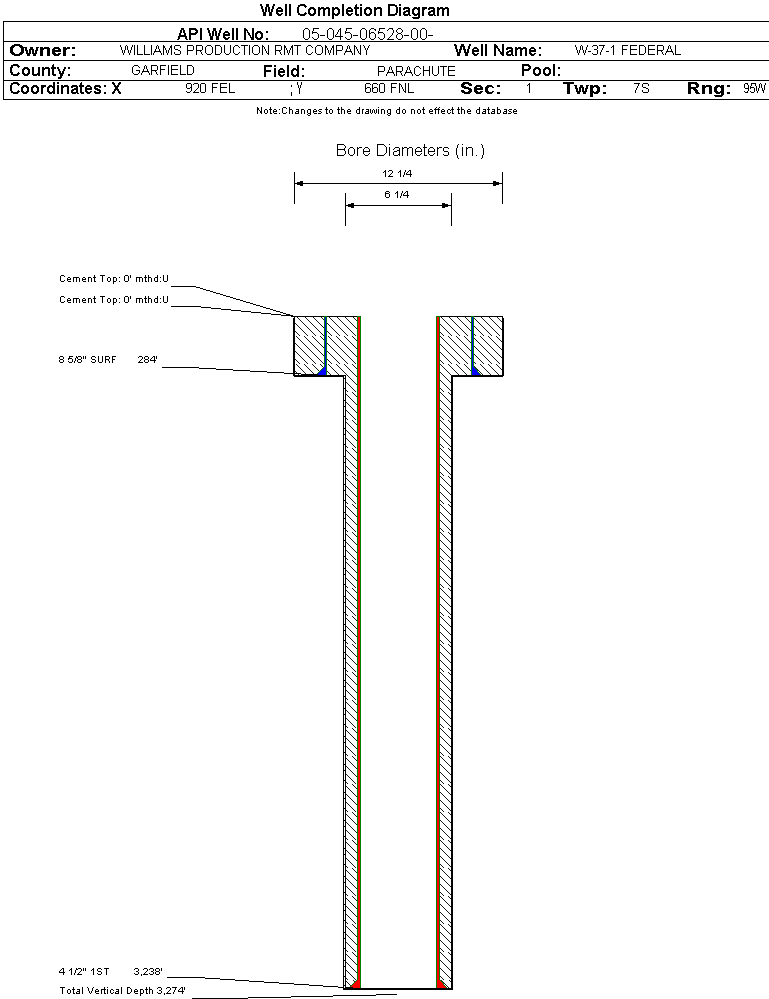 | Wellbore Completed | | Completion Date: | 8/5/1987 | | Measured TD: | 3274 ft. | Measured PB depth: | 3202 ft. | | True Vertical TD: | 3274 ft. | True Vertical PB depth: | | | Casing: | String Type: SURF, Hole Size: 12.25 in., Size: 8.625 in., Top: 0 ft., Depth: 284 ft., Weight: , Citings Type: HISTORICAL | | Cement: | Sacks: 0, Top: 0 ft., Bottom: , Determination Method: | | Casing: | String Type: 1ST, Hole Size: 6.25 in., Size: 4.5 in., Top: 0 ft., Depth: 3238 ft., Weight: , Citings Type: HISTORICAL | | Cement: | Sacks: 0, Top: 0 ft., Bottom: , Determination Method: | | Formation | Interval Top | Log Bottom | Cored | DSTs | | WASATCH | 0 ft. | | | |