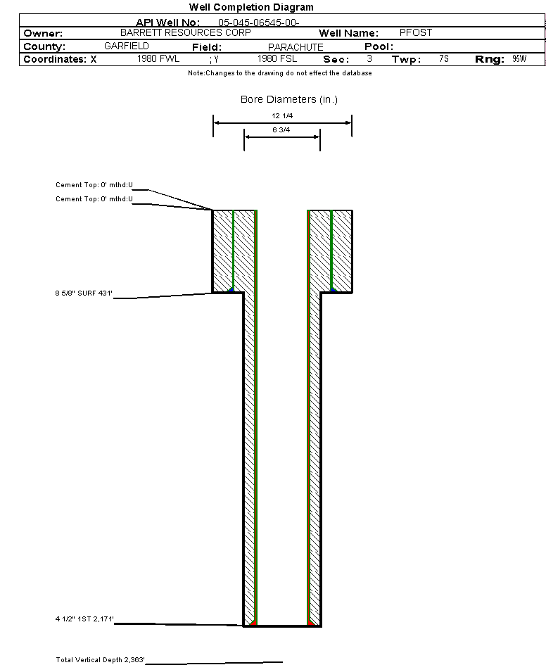 Cement:Sacks: 400, Top: 0 ft., Bottom: 2171 ft., Determination Method: CALC