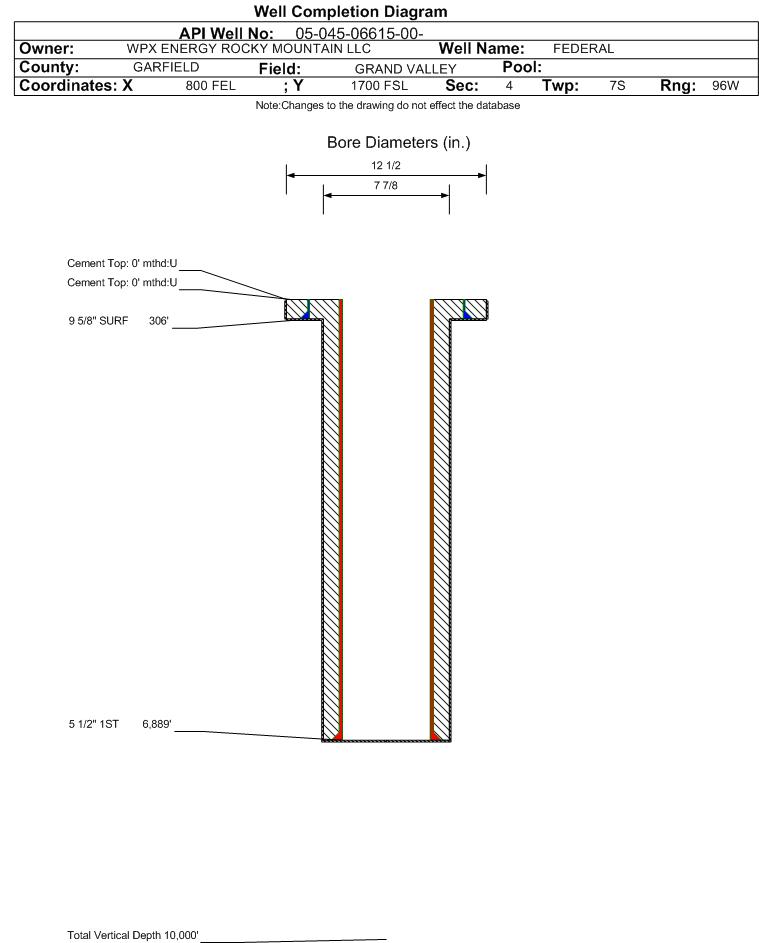 Wellbore #00 Wellbore Classification: GW Status: PR - 9/12/1993 Measured TD: 6900 ft. Vertical TD: 0 ft.| Wellbore Data for Original Wellbore | Wellbore Classification: GW PR - 9/12/1993 | | Wellbore Permit | | | Permit #: | 890919 | Expiration Date: | 2/21/1990 | | Proposed Depth/Form: | | | Surface Mineral Owner Same: | Not available | | Mineral Owner: | FEDERAL | Surface Owner: | Not available | | Unit: | | Unit Number: | C-24603 | | Formation And Spacing: | Code: WFCM , Formation: WILLIAMS FORK - CAMEO , Order: 0 , Unit Acreage: 160, Drill Unit: SE4 |