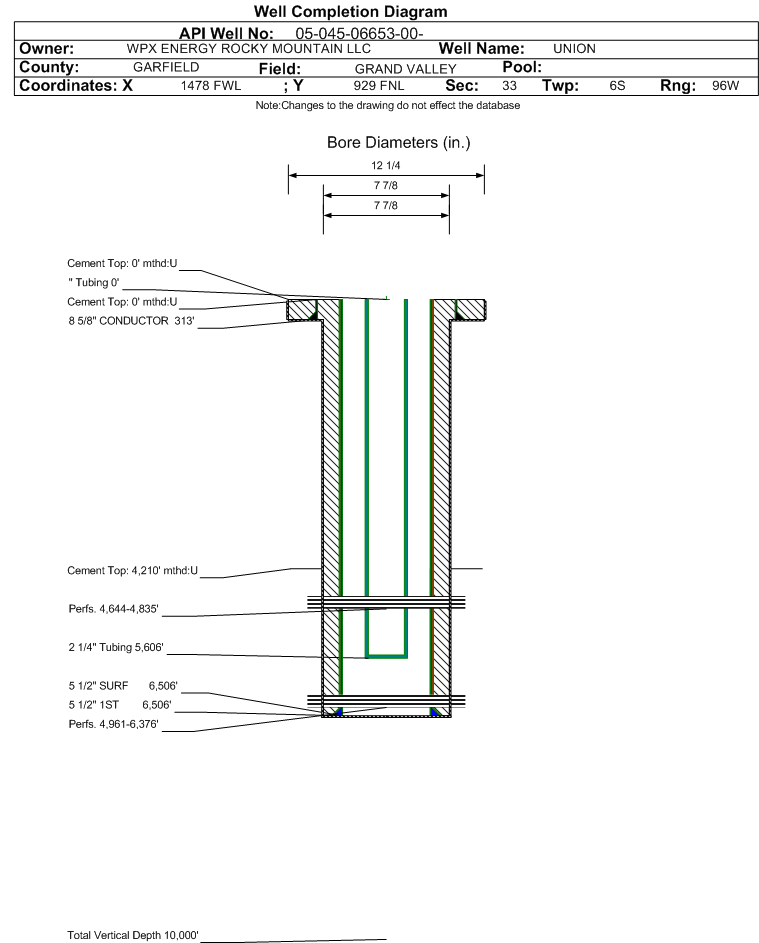 | | Perforation Data: | | Interval Top: | 4961 ft. | # Of Holes: | 66 | | Interval Bottom: | 6376 ft. | Hole Size: | |