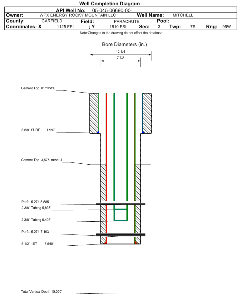 | | Perforation Data: | | Interval Top: | 5274 ft. | # Of Holes: | 361 | | Interval Bottom: | 7193 ft. | Hole Size: | 0.34 in. |