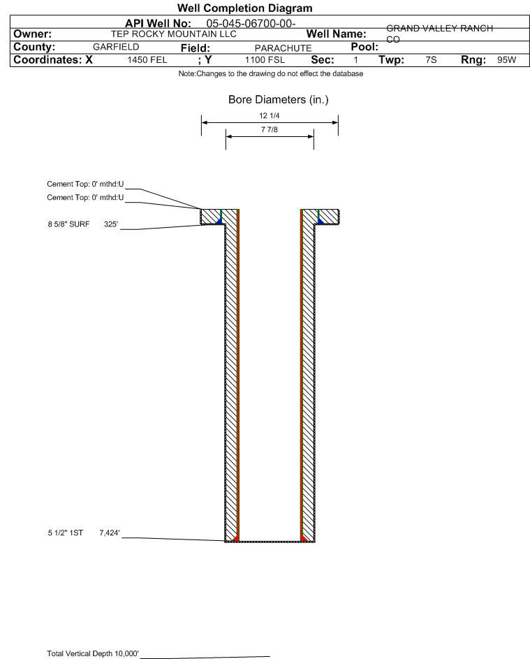 Wellbore #00 Wellbore Classification: GW Status: PR - 6/13/1991 Measured TD: 8340 ft. Vertical TD: 0 ft.| Wellbore Data for Original Wellbore | Wellbore Classification: GW PR - 6/13/1991 | | Wellbore Permit | | | Permit #: | 900779 | Expiration Date: | 11/16/1990 | | Proposed Depth/Form: | | | Surface Mineral Owner Same: | Not available | | Mineral Owner: | FEE | Surface Owner: | Not available | | Unit: | | Unit Number: | | | Formation And Spacing: | Code: WMFK , Formation: WILLIAMS FORK , Order: 0 , Unit Acreage: 320, Drill Unit: E2 |