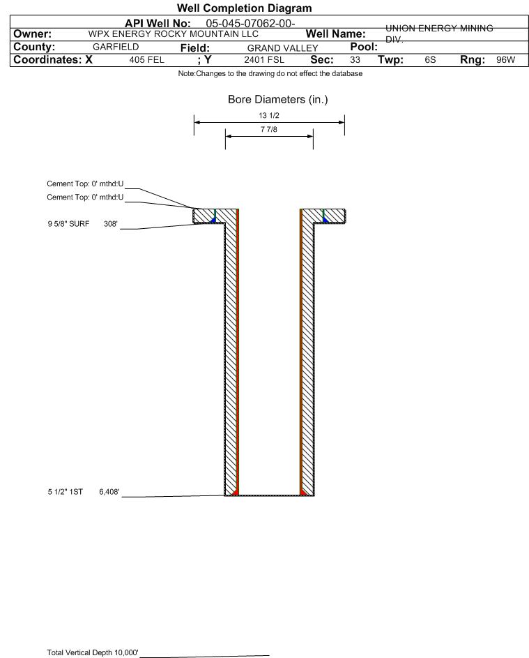 County:GARFIELD #045Location:NESE 33 6S96W 6