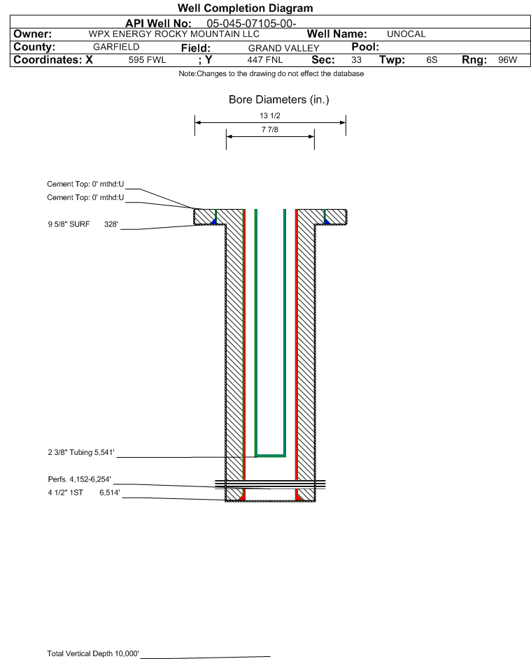 | | Perforation Data: | | Interval Top: | 4152 ft. | # Of Holes: | 68 | | Interval Bottom: | 6254 ft. | Hole Size: | 0.43 in. |