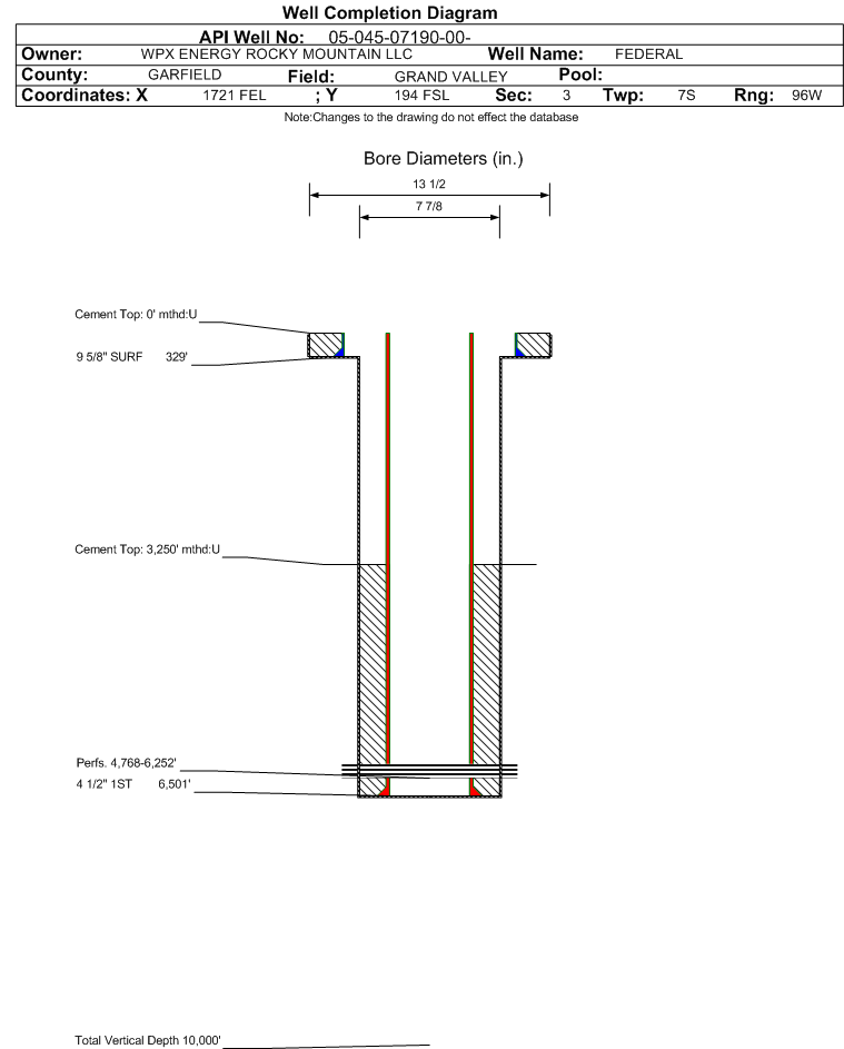 | | Perforation Data: | | Interval Top: | 4768 ft. | # Of Holes: | 48 | | Interval Bottom: | 6252 ft. | Hole Size: | |