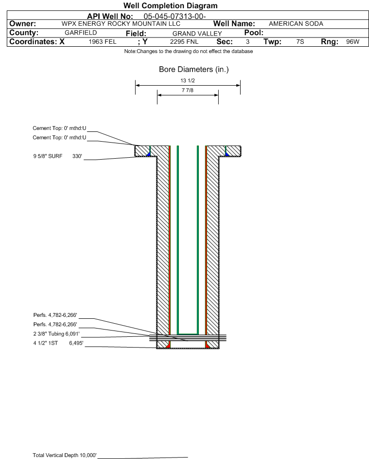 | | Perforation Data: | | Interval Top: | 4782 ft. | # Of Holes: | 70 | | Interval Bottom: | 6266 ft. | Hole Size: | |
