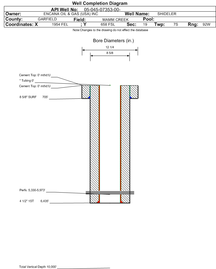 | | Perforation Data: | | Interval Top: | 5330 ft. | # Of Holes: | 132 | | Interval Bottom: | 5973 ft. | Hole Size: | 0.32 in. |