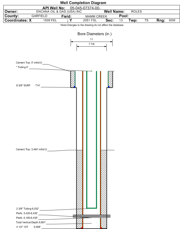 | | Perforation Data: | | Interval Top: | 5420 ft. | # Of Holes: | 71 | | Interval Bottom: | 6435 ft. | Hole Size: | 0.32 in. |
