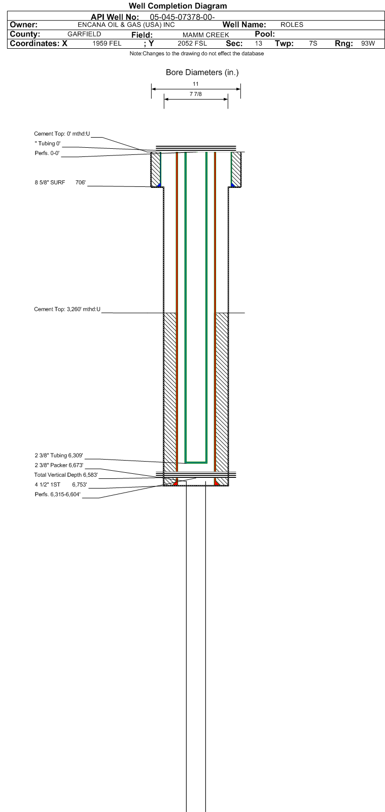 | | Perforation Data: | | Interval Top: | 6315 ft. | # Of Holes: | 20 | | Interval Bottom: | 6604 ft. | Hole Size: | |