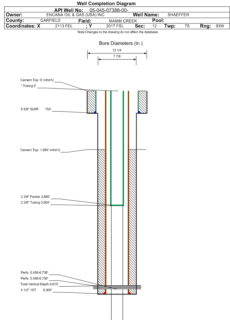| | Tubing Size: | 2.375 in. | Tubing Setting Depth: | 3904 ft. | | Tubing Packer Depth: | 3900 ft. | Tubing Multiple Packer: | | | Open Hole Top: | | Open Hole Bottom: | | | No Initial Test Data was found for formation WMFK. |