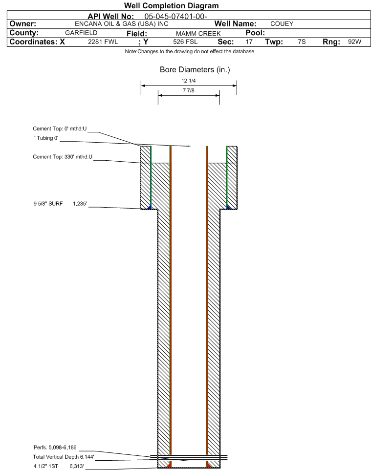| | Perforation Data: | | Interval Top: | 5098 ft. | # Of Holes: | 50 | | Interval Bottom: | 6186 ft. | Hole Size: | |