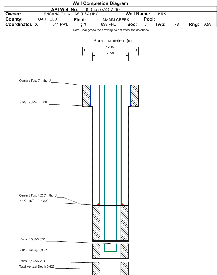 | | Perforation Data: | | Interval Top: | 5500 ft. | # Of Holes: | 6 | | Interval Bottom: | 5572 ft. | Hole Size: | 0.37 in. |