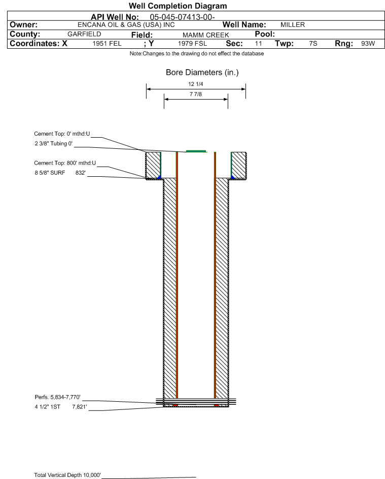 | | Perforation Data: | | Interval Top: | 5834 ft. | # Of Holes: | 79 | | Interval Bottom: | 7770 ft. | Hole Size: | |