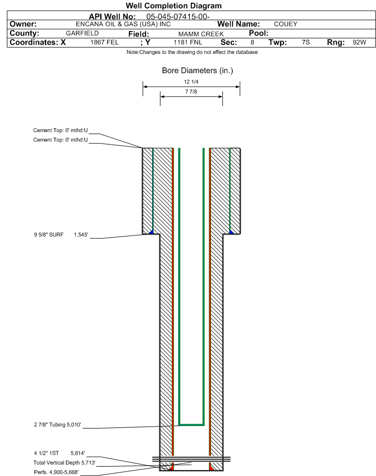 | | Perforation Data: | | Interval Top: | 4900 ft. | # Of Holes: | 34 | | Interval Bottom: | 5668 ft. | Hole Size: | |