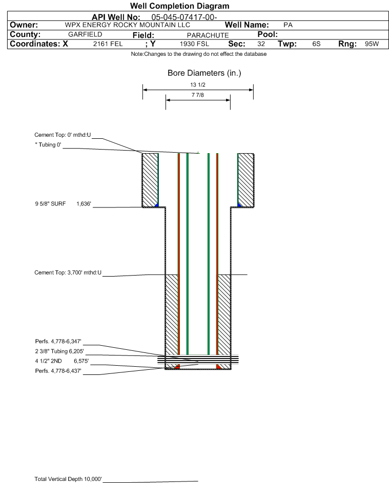 | | Perforation Data: | | Interval Top: | 4778 ft. | # Of Holes: | 74 | | Interval Bottom: | 6437 ft. | Hole Size: | |