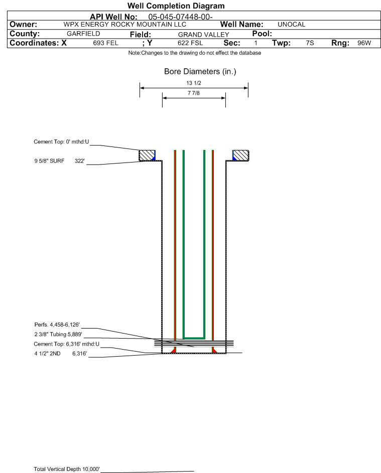 | | Perforation Data: | | Interval Top: | 4458 ft. | # Of Holes: | 66 | | Interval Bottom: | 6126 ft. | Hole Size: | |