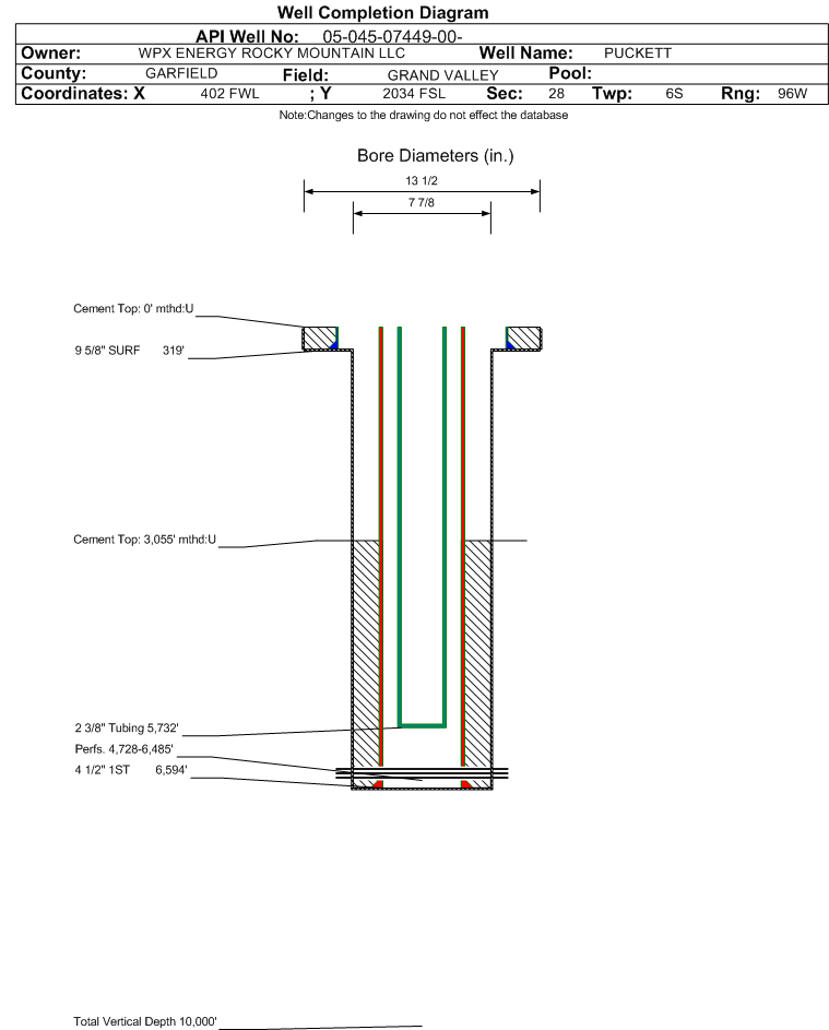 | | Perforation Data: | | Interval Top: | 4728 ft. | # Of Holes: | 66 | | Interval Bottom: | 6485 ft. | Hole Size: | |