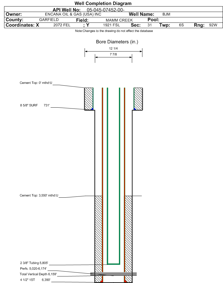 | | Perforation Data: | | Interval Top: | 5020 ft. | # Of Holes: | 78 | | Interval Bottom: | 6174 ft. | Hole Size: | |