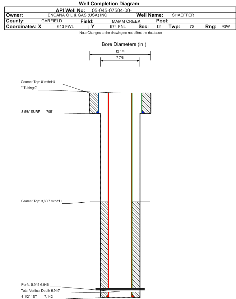 | | Perforation Data: | | Interval Top: | 5945 ft. | # Of Holes: | 51 | | Interval Bottom: | 6946 ft. | Hole Size: | 0.32 in. |