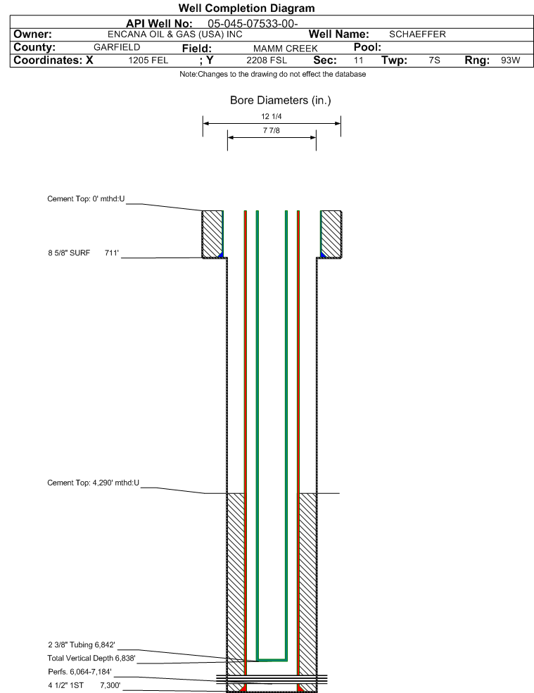 | | Perforation Data: | | Interval Top: | 6064 ft. | # Of Holes: | 77 | | Interval Bottom: | 7184 ft. | Hole Size: | |