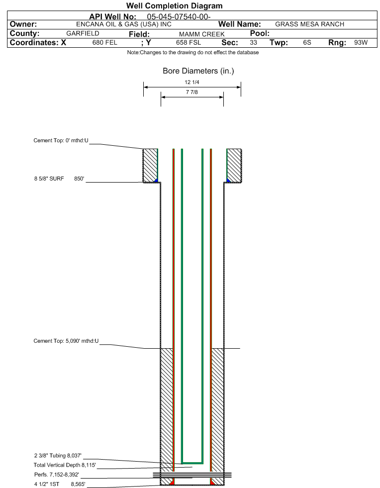 | | Perforation Data: | | Interval Top: | 7152 ft. | # Of Holes: | 72 | | Interval Bottom: | 8392 ft. | Hole Size: | |