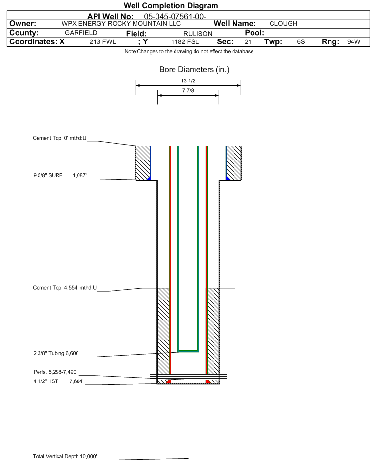 | | Perforation Data: | | Interval Top: | 5298 ft. | # Of Holes: | 102 | | Interval Bottom: | 7490 ft. | Hole Size: | |