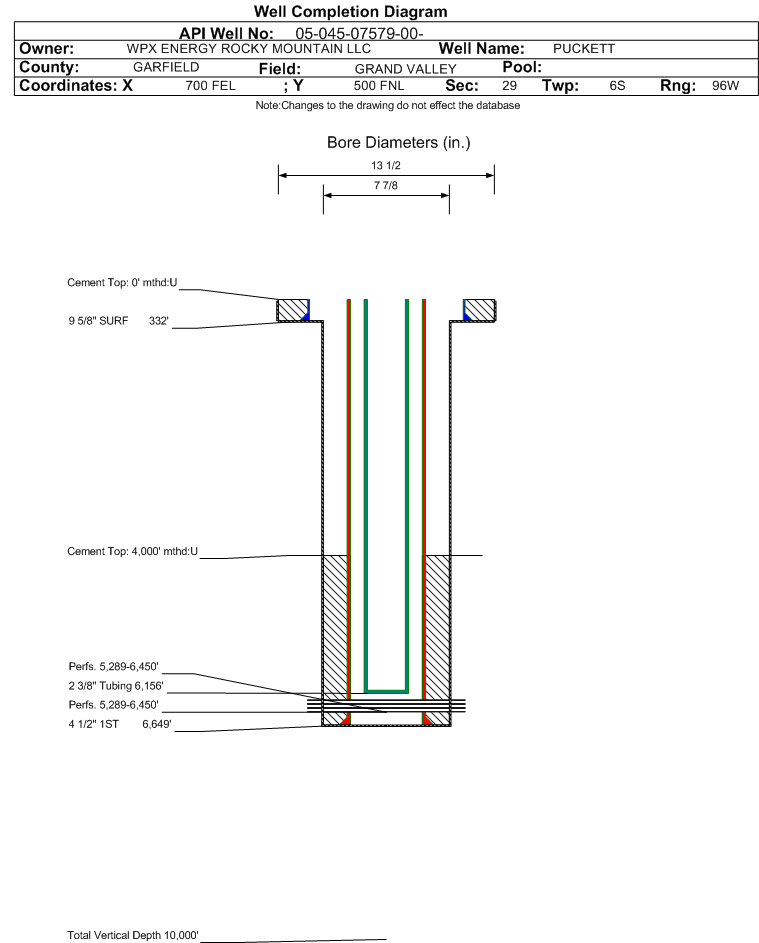 | | Perforation Data: | | Interval Top: | 5289 ft. | # Of Holes: | 54 | | Interval Bottom: | 6450 ft. | Hole Size: | |