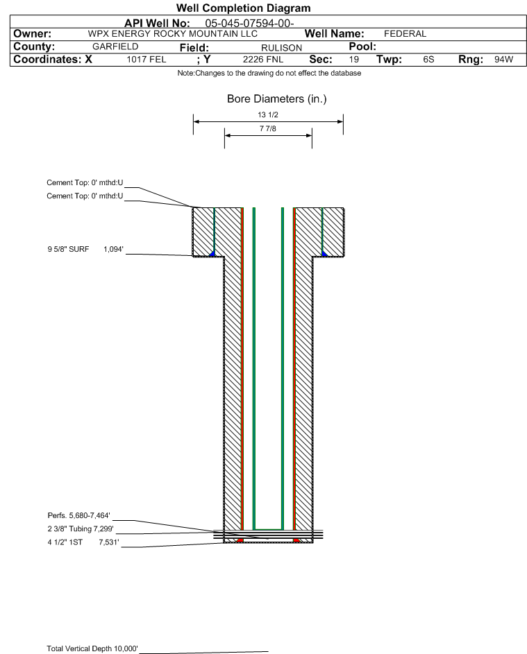 | | Perforation Data: | | Interval Top: | 5680 ft. | # Of Holes: | 84 | | Interval Bottom: | 7464 ft. | Hole Size: | |