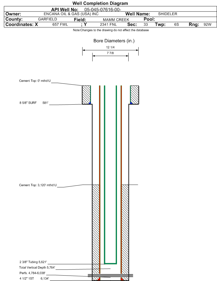 | | Perforation Data: | | Interval Top: | 4784 ft. | # Of Holes: | 81 | | Interval Bottom: | 6038 ft. | Hole Size: | |
