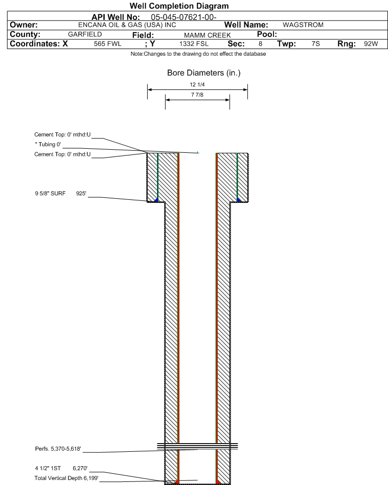 | | Perforation Data: | | Interval Top: | 5370 ft. | # Of Holes: | 60 | | Interval Bottom: | 5618 ft. | Hole Size: | |