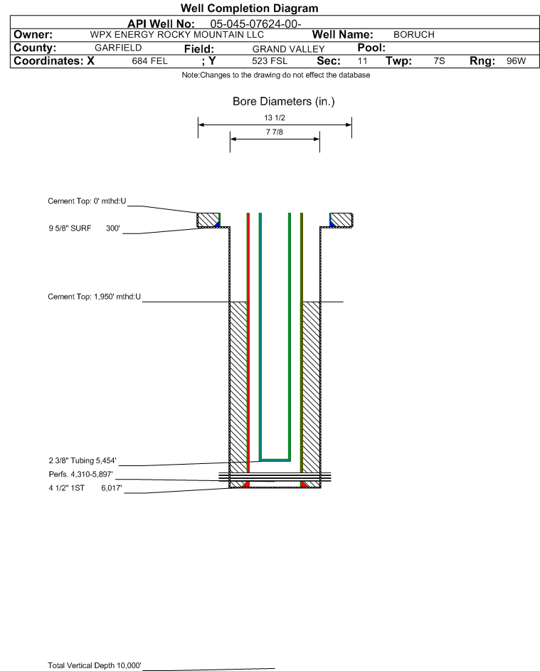 Cement:Sacks: 775, Top: 1950 ft., Bottom: 6017 ft., Determination Method: CBL