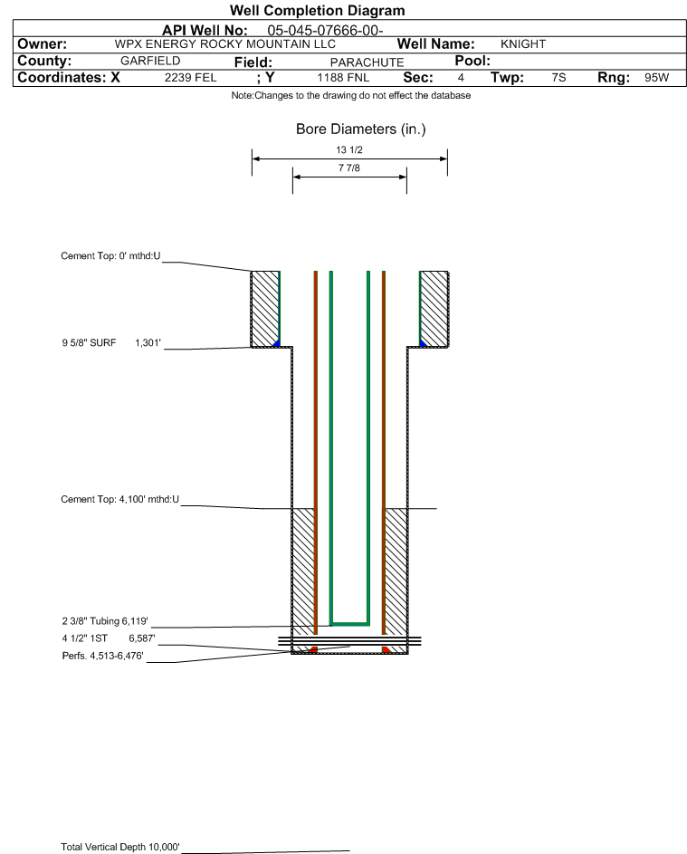 | | Perforation Data: | | Interval Top: | 4513 ft. | # Of Holes: | 86 | | Interval Bottom: | 6476 ft. | Hole Size: | |
