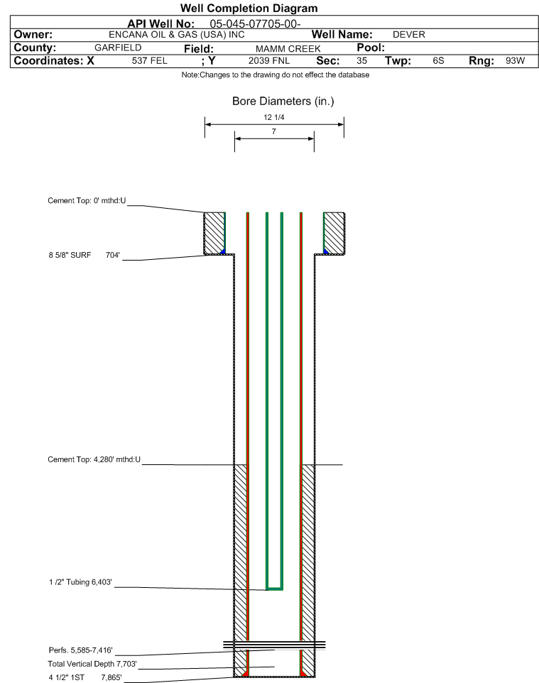 | | Perforation Data: | | Interval Top: | 5585 ft. | # Of Holes: | 68 | | Interval Bottom: | 7416 ft. | Hole Size: | |
