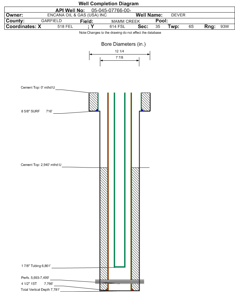 | | Perforation Data: | | Interval Top: | 5693 ft. | # Of Holes: | 46 | | Interval Bottom: | 7499 ft. | Hole Size: | |