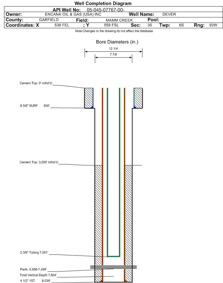 | | Perforation Data: | | Interval Top: | 5958 ft. | # Of Holes: | 82 | | Interval Bottom: | 7499 ft. | Hole Size: | |