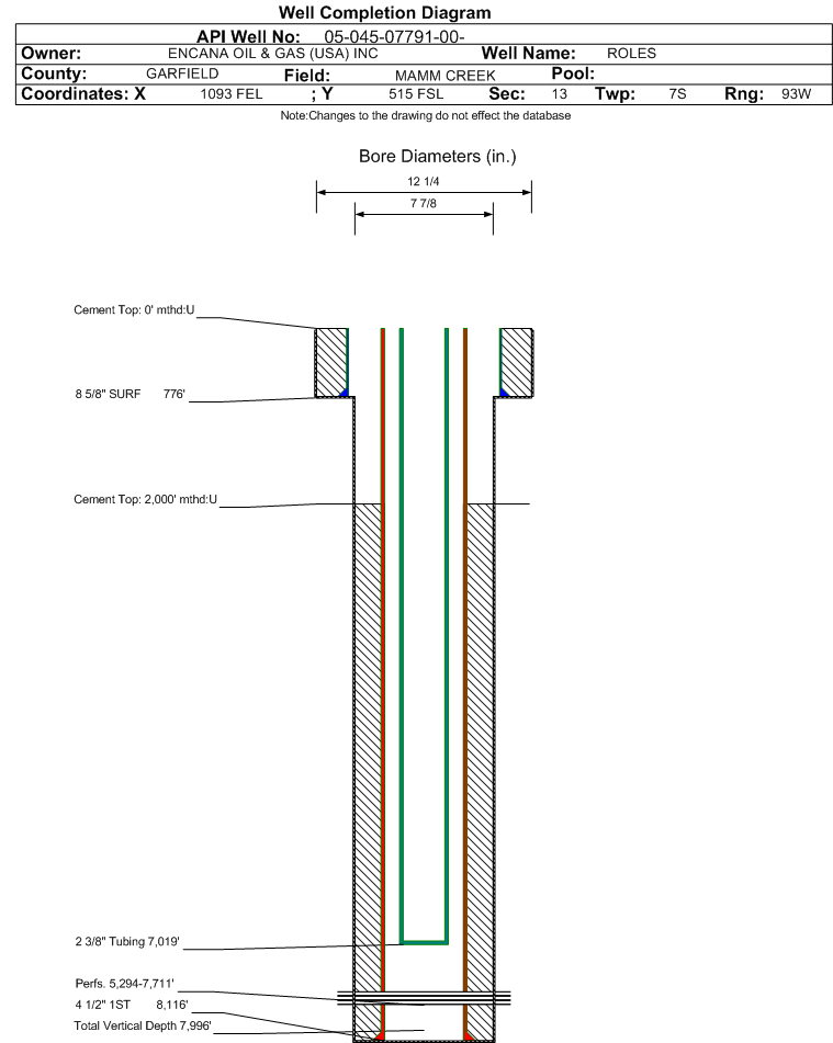 | | Perforation Data: | | Interval Top: | 5294 ft. | # Of Holes: | 100 | | Interval Bottom: | 7711 ft. | Hole Size: | |
