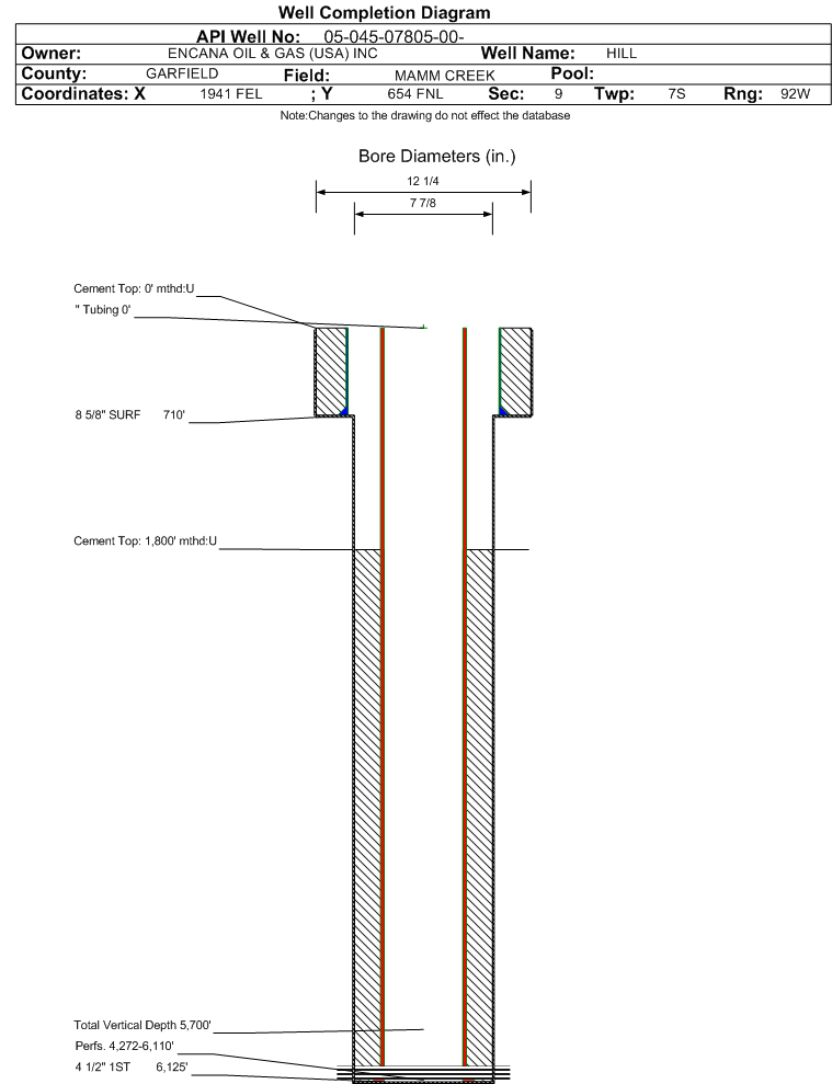 | | Perforation Data: | | Interval Top: | 4272 ft. | # Of Holes: | 74 | | Interval Bottom: | 6110 ft. | Hole Size: | |