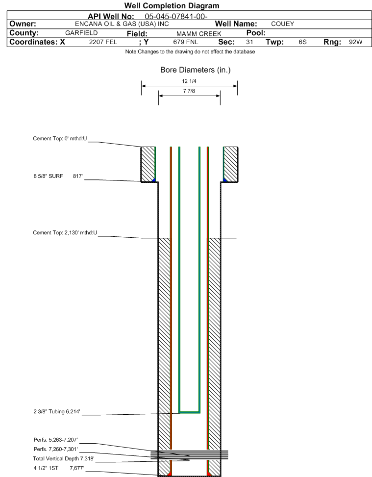 | | Perforation Data: | | Interval Top: | 7260 ft. | # Of Holes: | 12 | | Interval Bottom: | 7301 ft. | Hole Size: | 0.45 in. |