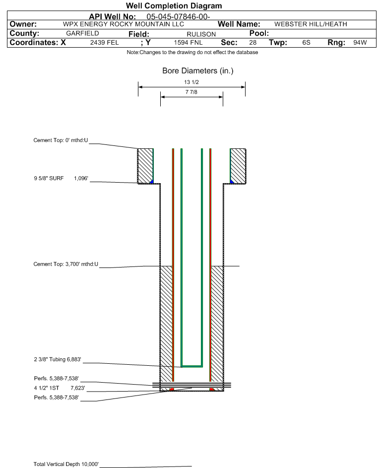 | | Perforation Data: | | Interval Top: | 5388 ft. | # Of Holes: | 82 | | Interval Bottom: | 7538 ft. | Hole Size: | |