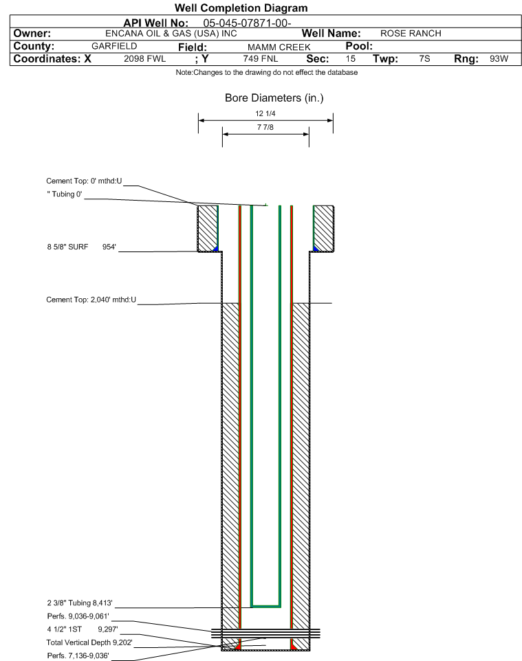 | | Perforation Data: | | Interval Top: | 7136 ft. | # Of Holes: | 70 | | Interval Bottom: | 9036 ft. | Hole Size: | |
