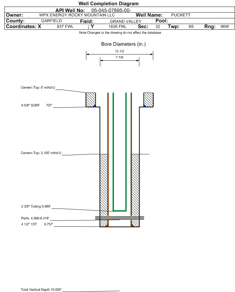 | | Perforation Data: | | Interval Top: | 4966 ft. | # Of Holes: | 65 | | Interval Bottom: | 6418 ft. | Hole Size: | |