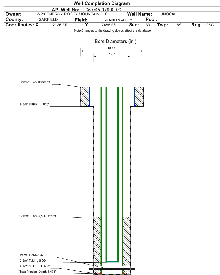 | | Perforation Data: | | Interval Top: | 4864 ft. | # Of Holes: | 60 | | Interval Bottom: | 6328 ft. | Hole Size: | |