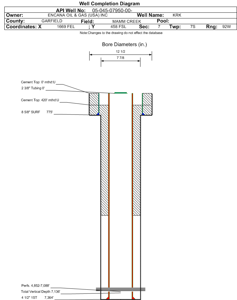 | | Perforation Data: | | Interval Top: | 4852 ft. | # Of Holes: | 96 | | Interval Bottom: | 7088 ft. | Hole Size: | |